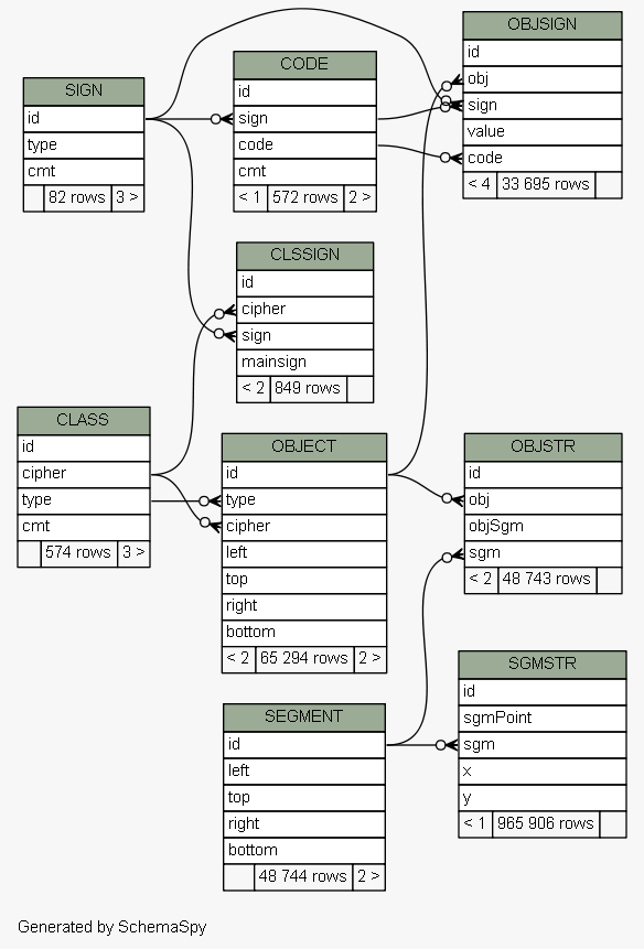 Потом подумал, что некоторые маленькие таблицы таки можно сравнивать. В этой схеме четыре нижних () -- это сама карта ()Object, ObjStr, Segment, SgmStr), а те, что выше - словари (как в мое время это называли) для толкования карты. Там, в них мало записей. Словари меняют программисты. Там лежали слова дорога, река, линия электропередач, границы. Ну приспичило добавить дорога, по которой ездят беспилотный транспорт. Изменение должно попасть в обновление и его надо проверить. То есть, явно указанные маленькие таблицы, которые можно принести с флешкой в виде CSV-или XML-файла можно сравнивать. ... |