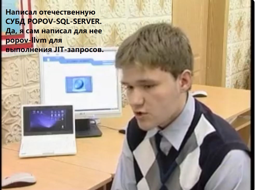 Тихо разрабатывается "СУБД" "сокол" - взято лучшее из PostgreSQL, Oracle и сделано намного лучше, чем у этих пендосов Т.е. это типа "росийская ОС!" (линукс), "отечетсвенная СУБД" (PostgreSQL) и т.д. т.е. важно, чтобы были исходные коды, чтобы можно было исправить название на скреповое. При этом сообщения, что США перекроют поставки электроники приведет к кризису - это "ни о чем" ... |