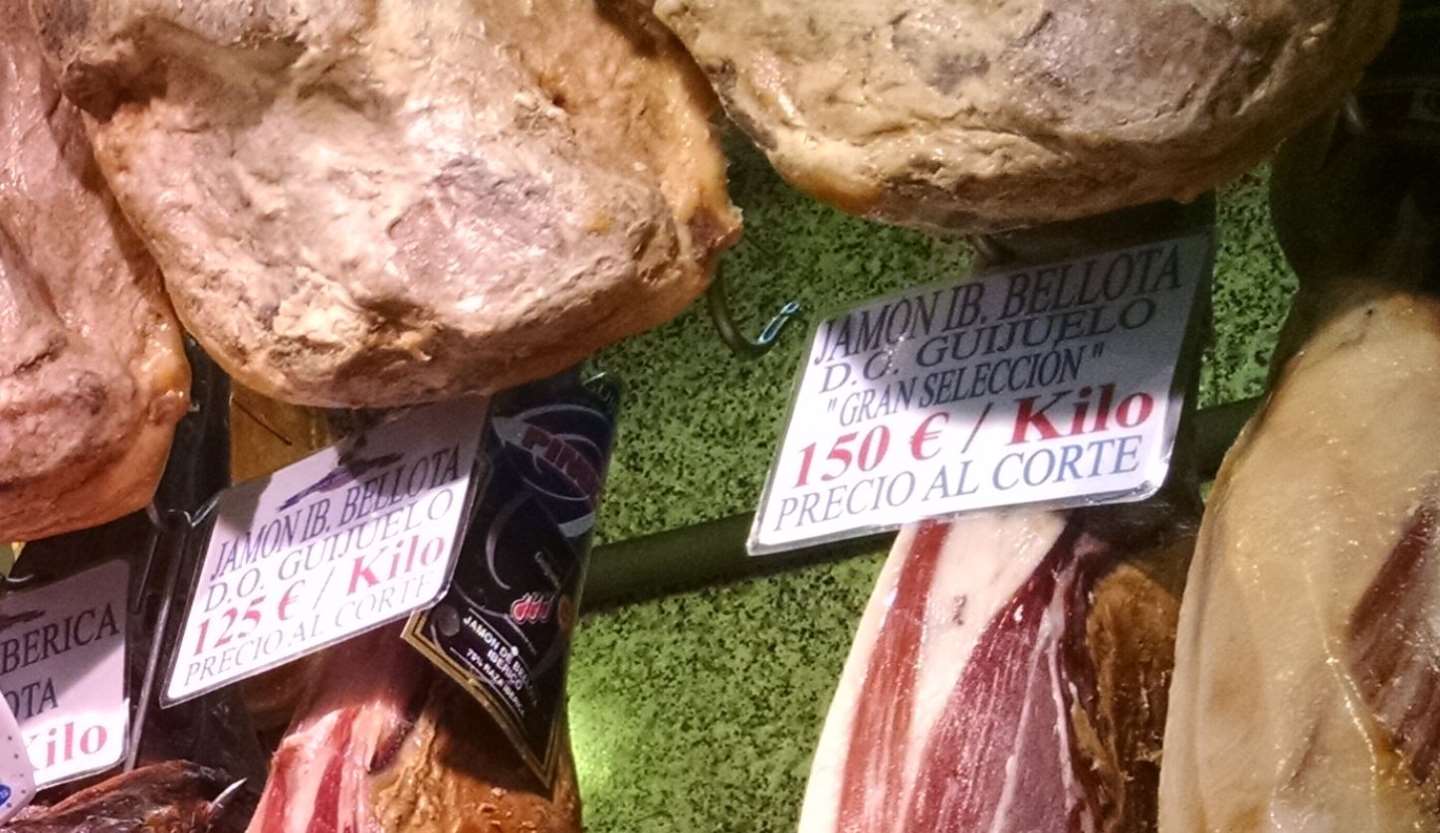 И их местная свиная тонко нарезанная нога, от ста евро за килограмм, из золота что ли. ... |