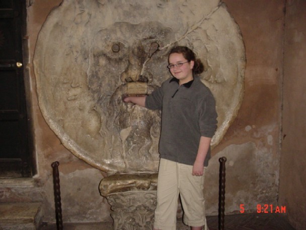 SandalTree LenaV Эта каменная маска находится в портике церкви Santa Maria in Cosmedin в Риме. Это the Mouth of Truth. Говорят, что если лжывый человек положет руку в рот этой маски, то этот древний бог откусит её. Мне стоило больших трудов уговорить мою дочь сделать это, а сама я так и не решилась ;) Так, на всякий случай. ;) ну это тебе крупно повезло - видимо в данный момент в маске что-то заклинило, время все-таки..................................... :))) Дублирую словами - там стоит смайлиг. ... |
