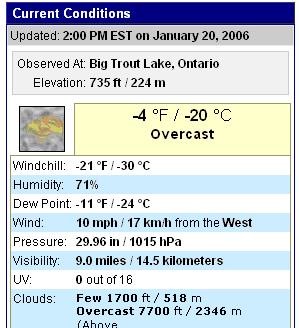 Savik Сандаль, поищи по форуму, я тут как-то потратил часок, дал подборочку насчёт Канады, где и сколько там живёт людей и какие там температуры, а также аналогично для России. Удивишься. Вот вам погода в Москве и Канаде В Москве: -26 ночью В Big Trout Lake, Ontario: -23 днём При этом учитывай что Москва находится севернее Big Trout Lake. ... |