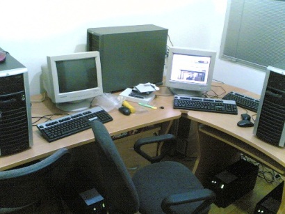 Офигенный шум. Хотя это еще ерунда, не вся комната на фоте светится, за моей спиной стойка с шестью свичами D-Link 1224T, рядом с ним два блока Samsung iDCS-500, четыре штуки 5 кВт инерционых трансформаторов и 10 кВт инвертор Jacobs. Шум как в преисподней. ih8_1c! ... |