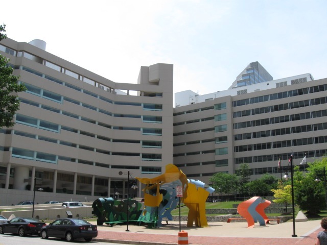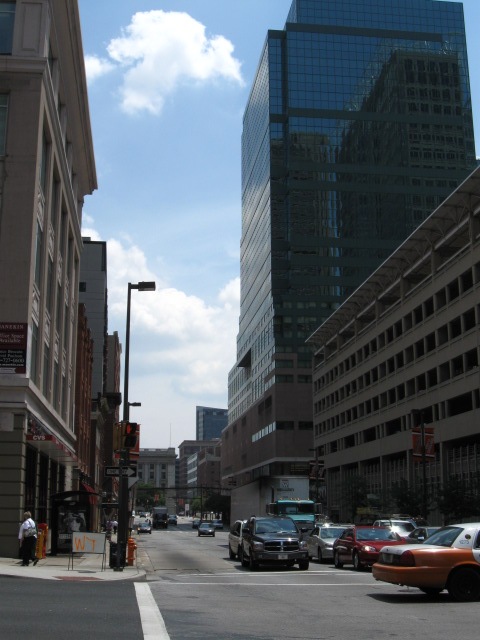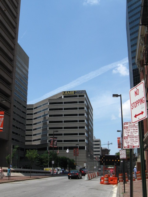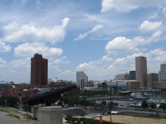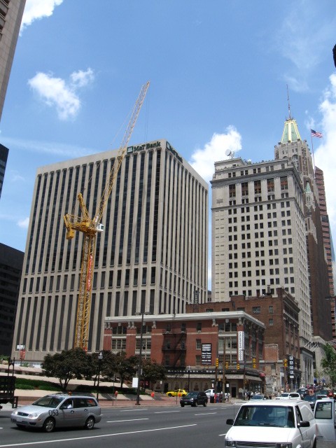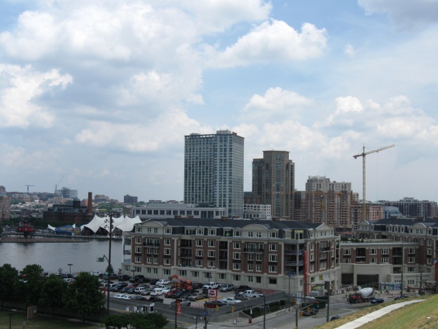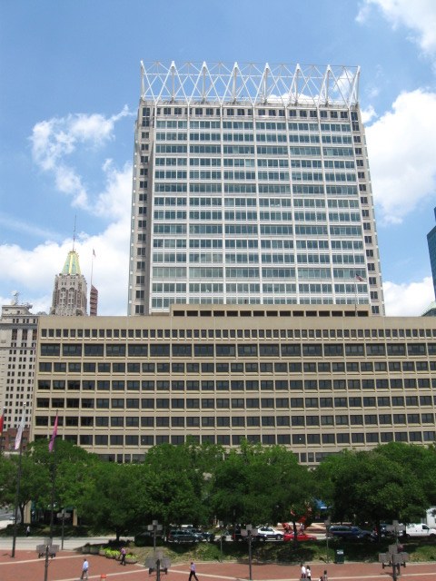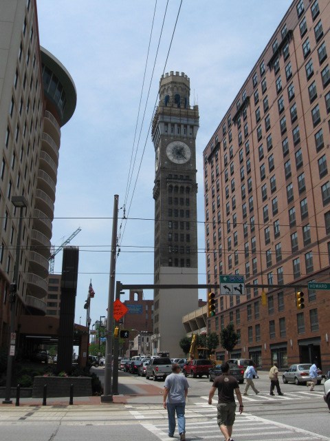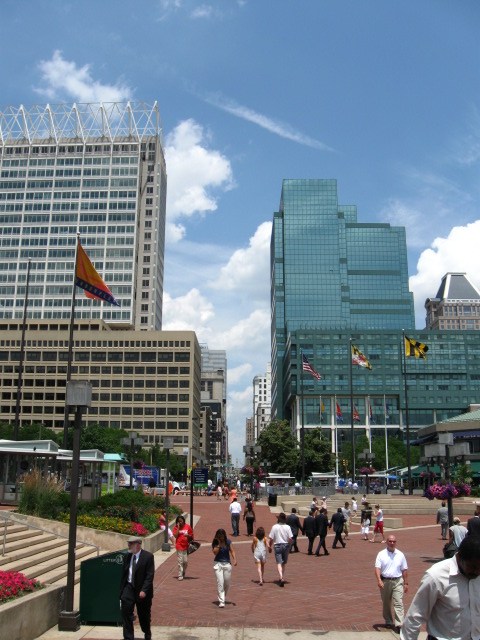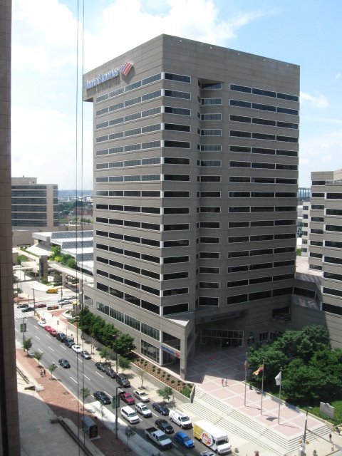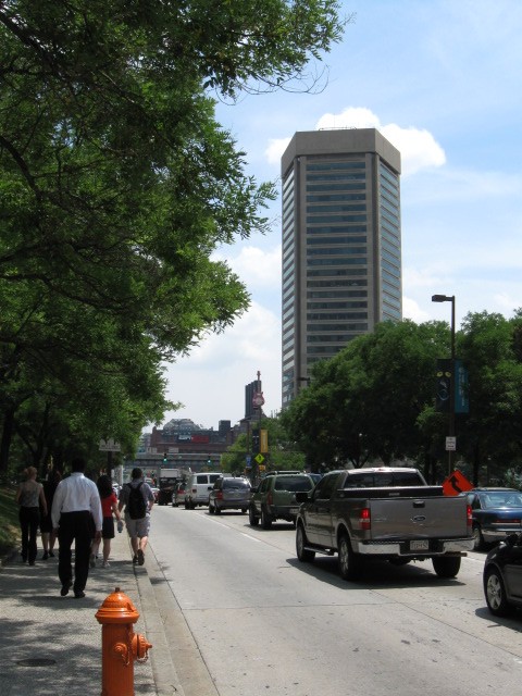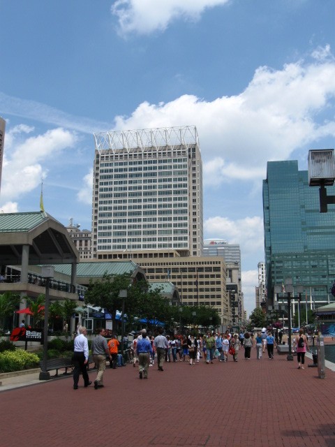 Собственно это географический центр Балтимора с его двумя самыми большими небоскрёбами. Поэтому я посмотрел вверх на старый билдинг "Бэнк оф Америка" с золотой крышей (будет на других фотках) ... |