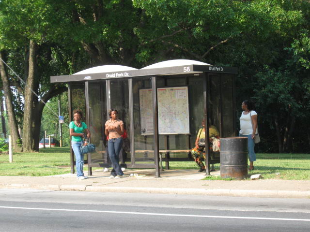 Автобусная остановка. Баба по центру вдруг стала возмущаться что я её сфотографировал. Тоже мне принцесса Диана. В кадр не попали парочка мотоциклистов, гойцали на задних колёсах. ... |
