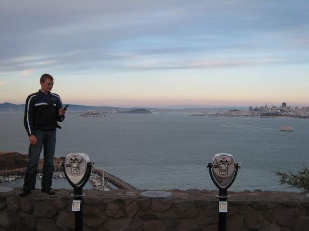 Я на фоне Сан Франциско. Справа - Golden Gate Bridge, его не видно. Чуть правве от меня, остров Алькатраз. ... |