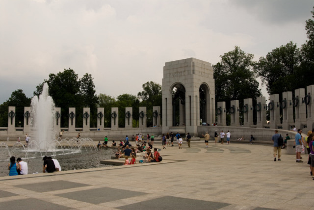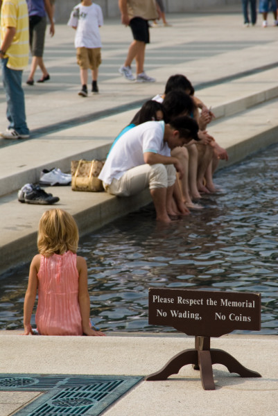 А это мемориал павшим во Второй Мировой Войне. На табличке написано "по воде не ходить", но не написано "Ноги не мочить". А что не запрещено - разрешено. И полицейские приветливо взирают со своих лошадей на остужающих ноги людей. ... |