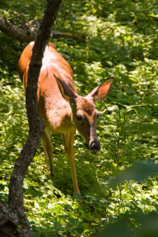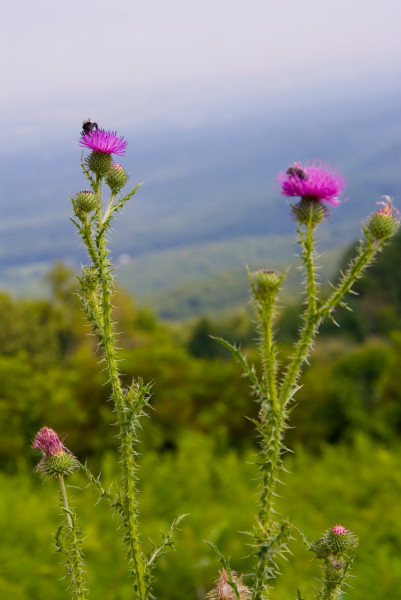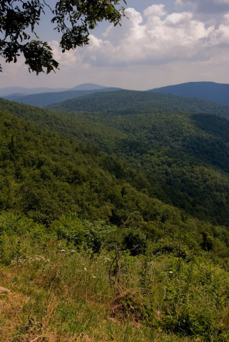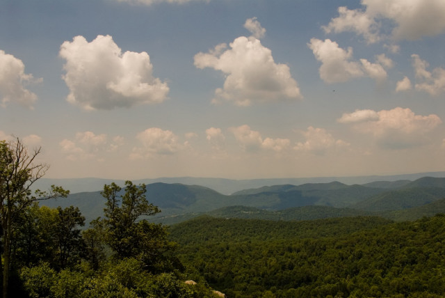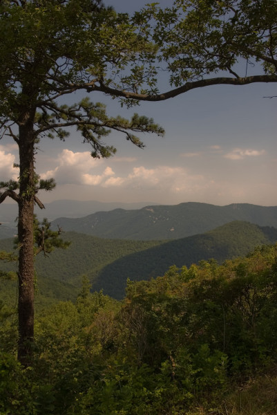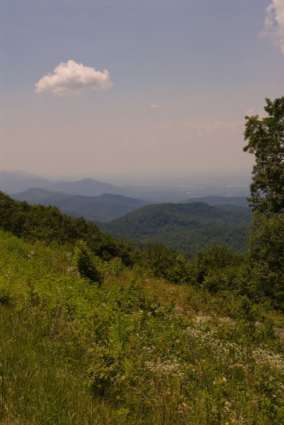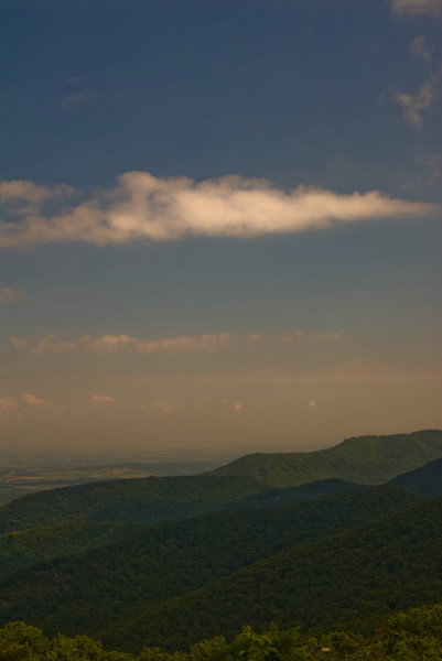 На пляже я сгорела нещадно. Задумчиво оглядев меня с ног до головы дочь сказала:"Нет мама, ты не похожа на лобстер, ты похожа на печёный помидор." Нет, ну кто-бы нам говорил правду - если-бы не дети. А на следующий день нам пршлось срываться и бежать домой. Когда уже проехали Ричмонд, дочке стало хуже и мы остановились в какой-то дыре в горах, а наутро мы обнаружили что стоим у дверей в Национальный Парк Шенандоах, дочке уже стало легче, а ехать нам всё-равно по-пути, поэтому поехали через парк. Собственно парк это дорога, котрая идёт по хребту и там устроены такие обзорные площадки на пару машин. Можно просто ехать и не выходя из машины - любоваться. Мы всё-таки сделали несколько остановок, и обещали постараться вернуться осенью. Думаю что будет ещё красивее. ... |
