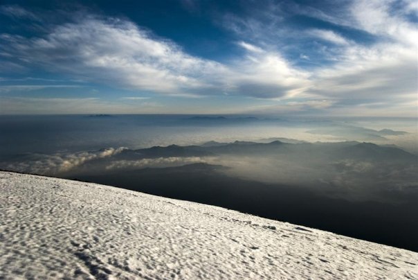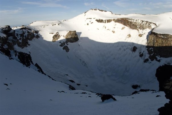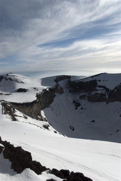 Вокруг кратера шли ещё час, уже под солнцем. Оно топило снег и мы начали в него проваливаться. Этот последний час был самым тяжёлым, хотя и самым пологим. ... |