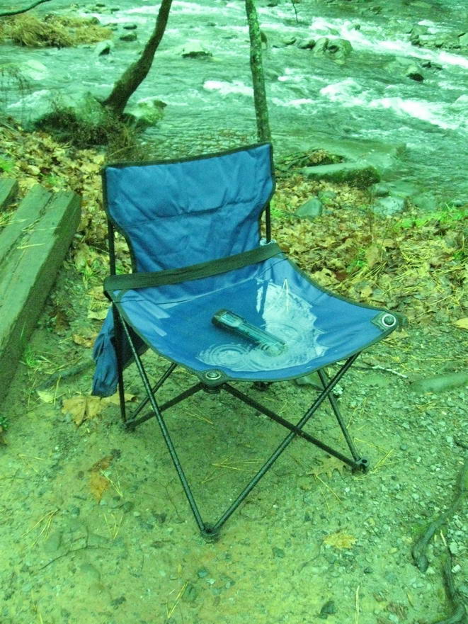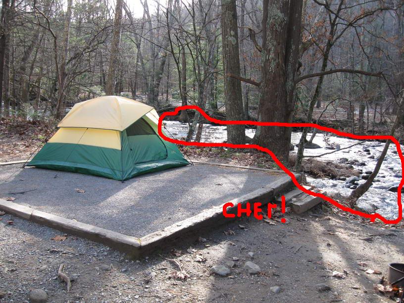 В горах. За несколько дней до поездки шерстил по кэмпингам, но нигде не было свободных мест, думал придётся спать в машине, а места не продавали попросту потому что все забили. Персонал ушёл в зимнюю спячку. Нужно самому приезжать, самому забивать место, заполнять конвертик, класть туда денюжку и бросать в ящик. Всё на честном слове. Вот такое мы шикарное место отхватили, возле самой речки... Я просто балдел. ... |