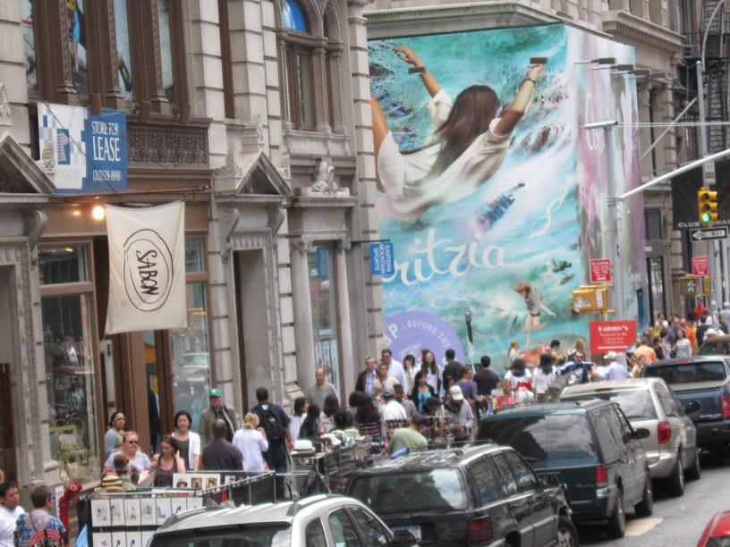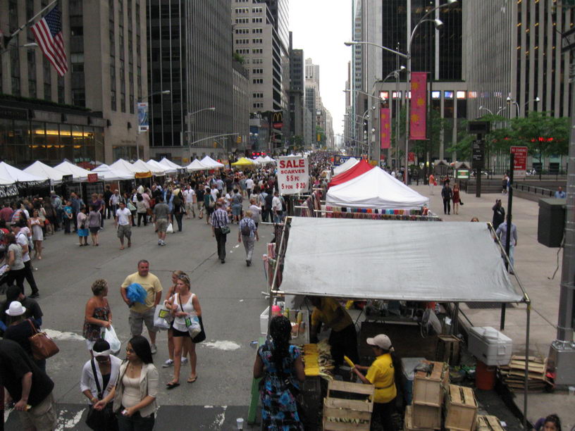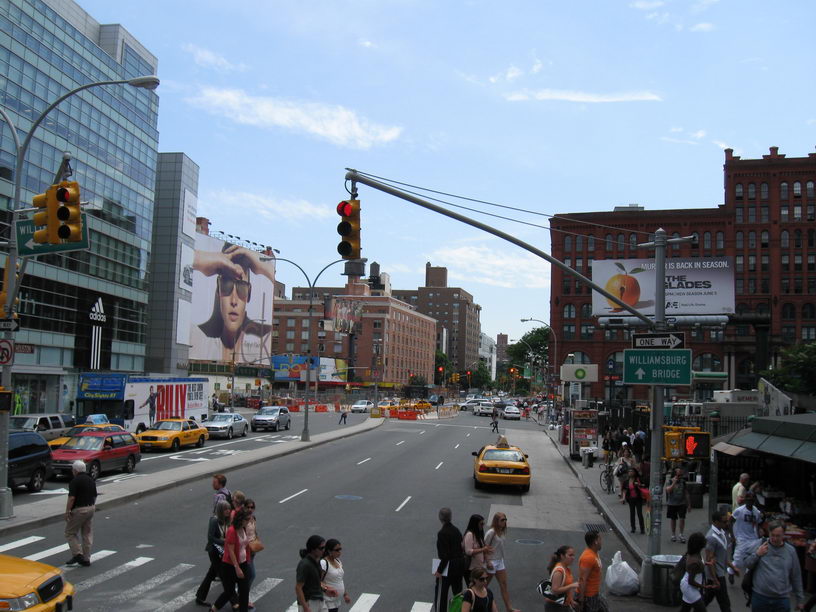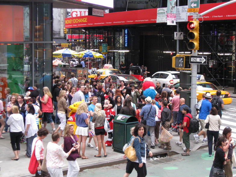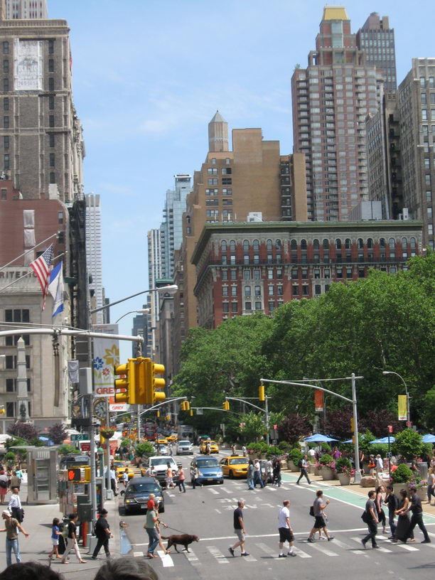 На переднем плане перекрёсток Бродвея и 5-й Авеню. На заднем плане южный Манхеттен. Ещё заднее слева виднеется Веризано-Бридж. ... |