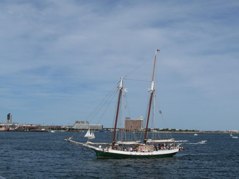 Кораблик на приколе USS Constitution. К сожалению мы плыли последним рейсом и не спускались на берег на него полазить. ... |