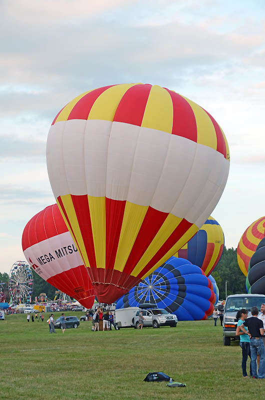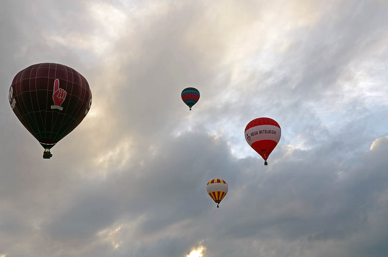Вечером воздухоплаватели привезли свои шары снова на поляну, откуда вылетали. Дождались темноты, снова надули шары, но карзины видно прикрепили к замле, и время от времени включали свои горелки - в темноте пламя выглядело очень ярким и зорошо освещало сами шары. И так наверное целый час а то и два. Мне не очень понравилось. ... |