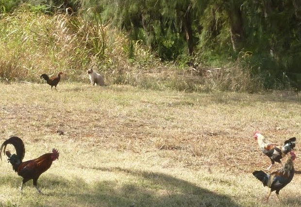 Вспомнила! На острове Кауаи - дикие куры и кошки ВЕЗДЕ. Причём довольно мирно сосуществуют. Я вот прицепила фото, где обвела кошку, а то в кустах плохо видно. ... |