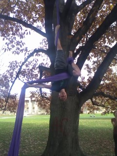 А мне в спортзалах скучно становится, поэтому прдепочитаю бегать со знакомыми вокруг озер. А последнее время в Сиэттле ходил на aerials - очень нравилось: и нагрузка хорошая, и довольно плавно. По три раза в неделю по 2 часа занятий было более чем достаточно, и вес скинул и волосы стали гуще и зубы белее =) Картинка (висю не я). Вообще на деревья висеть нельзя: они ломаются, падают и люди от этого портятся. ... |