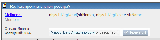 boogiman А я бы хотел нажать кнопку Нравится, но напишу в стиле SQL.RU +1 :-D Если вы хотите сказать мне и iscrafm__, что вы согласны с мнением iscrafm__, то бесполезно нажимать кнопку "нравится", потому что сообщение iscrafm__ уже прочли, оно отложилась в памяти, и никто (и я тоже) не будет постоянно инспектировать всю сотню сообщений на предмет что там кому понравилось. А так я прочитал "+1", понял и запомнил вашу точку зрения. ... |
