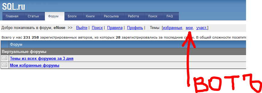 Mikhail Tchervonenko, а ещё лучше с этой ссылкой https://www.sql.ru/forum/mymessages тогда и свои и с своим участием ... |