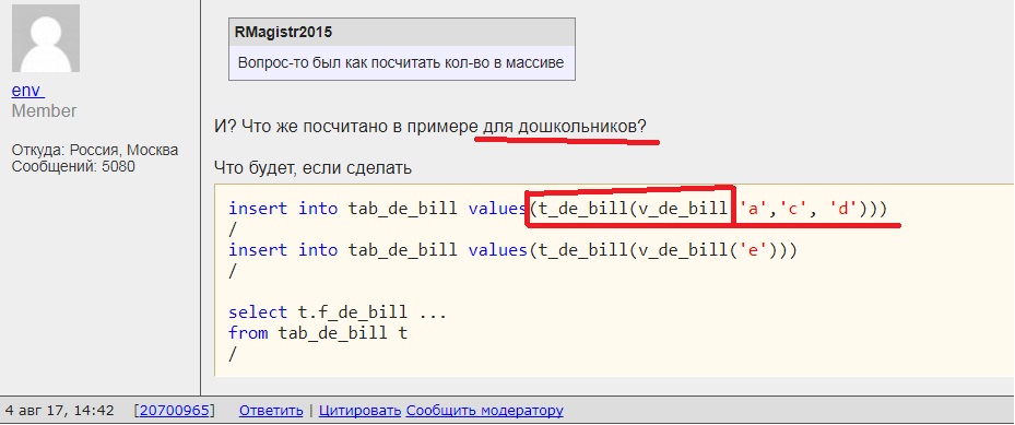 RMagistr2015, Это пять. Из-за меня - это означает, что я явно попросил модераторов форума заблокировать "участника". Модераторы ветки Oracle, можете "официально" сообщить "участнику" - было ли подобное действие с моей стороны? Или всё-таки из-за реакции и ответов самого "участника"? Как у маленьких детей - споткнулся об скамейку - значит скамейка виновата. ... |