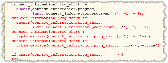 ` что-то сломалось в выделении всей строки, в коде Код 1. С выделением pl/sql буду разбираться. Синтаксич. раскраски, конечно не будет, но текущую постараюсь улучшить. ... |