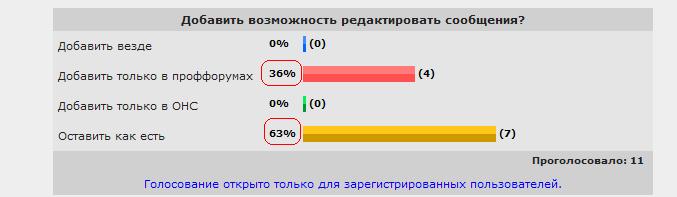 а может приделать к вариантам ответов и список голосовавших? и сделать 2 варианта опросов. анонимный и с показом проголосовавших мемберов. или предлагалось уже? ... |