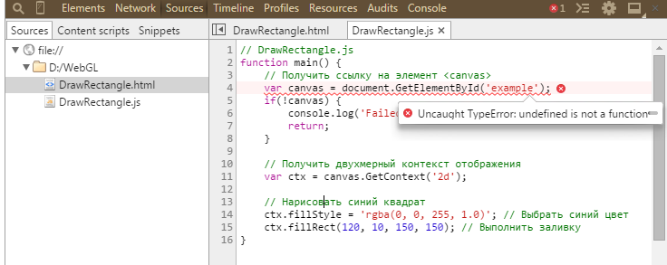 Доброго времени суток. Читаю книжку по WebGL и набираю в текстовом редакторе её примеры. Возникла проблема... Два файла находятся в одном и том же каталоге: Код: html 1. 2. 3. 4. 5. 6. 7. 8. 9. 10. 11. 12. 13. Код: javascript 1. 2. 3. 4. 5. 6. 7. 8. 9. 10. 11. 12. 13. 14. 15. 16. Однако браузер ругается: К сожалению, это сообщение мне не понятно. ... |
