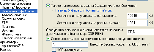 У меня 4Гб флеша Transcend. Отформатировна под FAT32 с размером кластера 4К. Пока никаких проблем с ограничениями на размер файлов я не замечал. ну естественно. У FAT32 ограние начинает работать с 4,2 Гб где то. http://ru.wikipedia.org/wiki/FAT32 Файлы в FAT32 Максимально возможный размер файла для тома FAT32 — 4 ГБ — 4 294 967 296 байт По теме. Я бы попробовал поиграть с параметрами в TotalCommander: скрин в примере увеличен буфер с 32 до 1024 (хотелось ощутимой разницы). Но, видимо без наличия флешки более 4 Гб - не получится... ... |