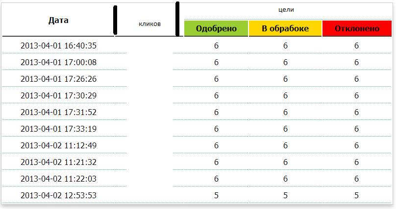Статистика кликов и целей (баннерная система)