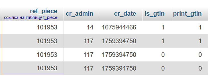 Возможно ли создать индекс для is_gtin исключающий создание дублирующего значения равного 1 для определённого значения ref_piece в другой колонке. То есть для ref_piece =101953 невозможно было бы добавить в колонке is_gtin повторяющееся значение равное 1. При этом повторение значения 0 разрешается. ... |