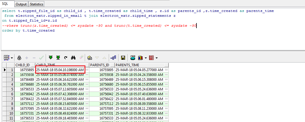 Вячеслав ЛюбомудровНихрена не понял -- а кто сказал, что TIME_CREATED для конкретного ID одинаков в обоих таблицах ? Никто и не говорил , написал запрос : Разница во времени есть . ... |