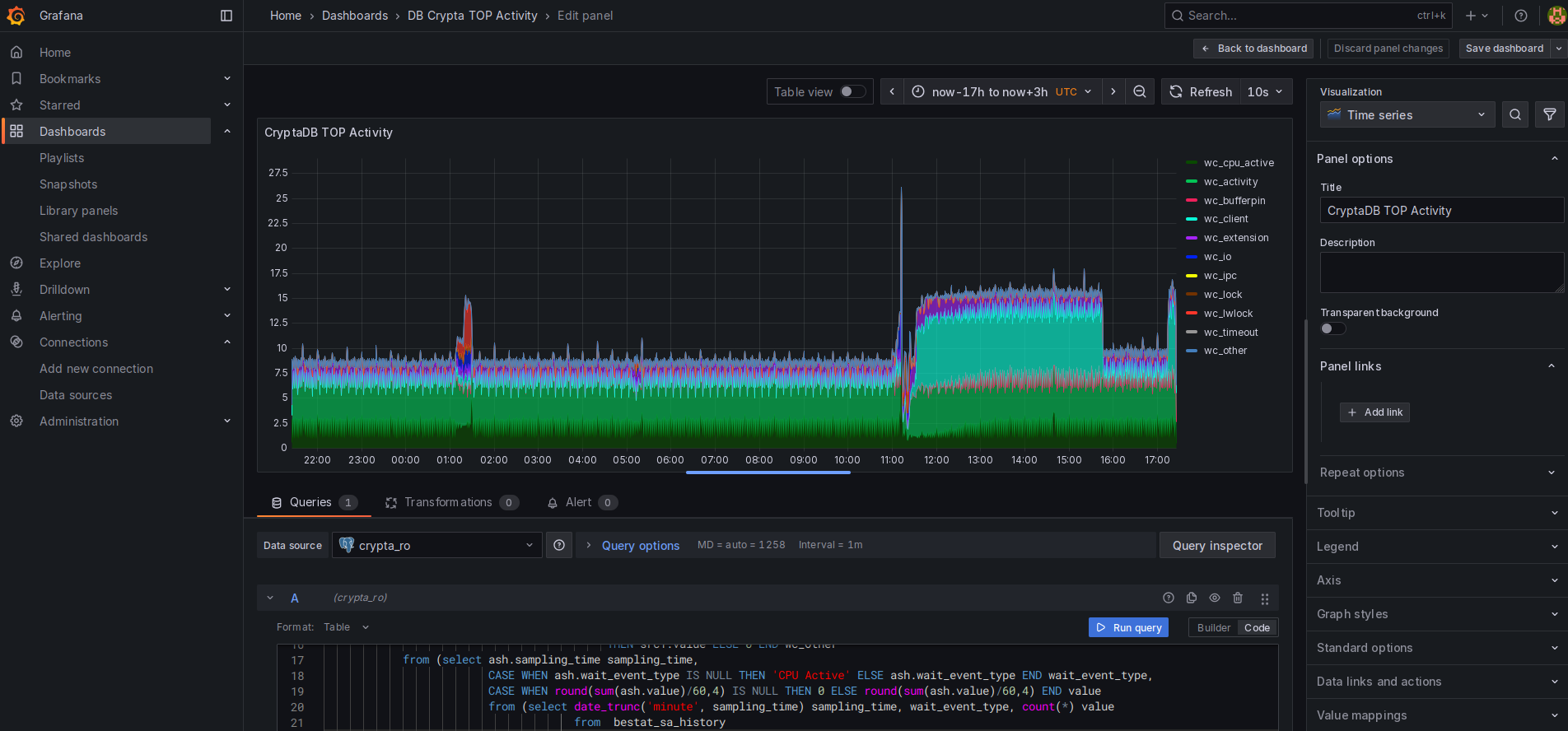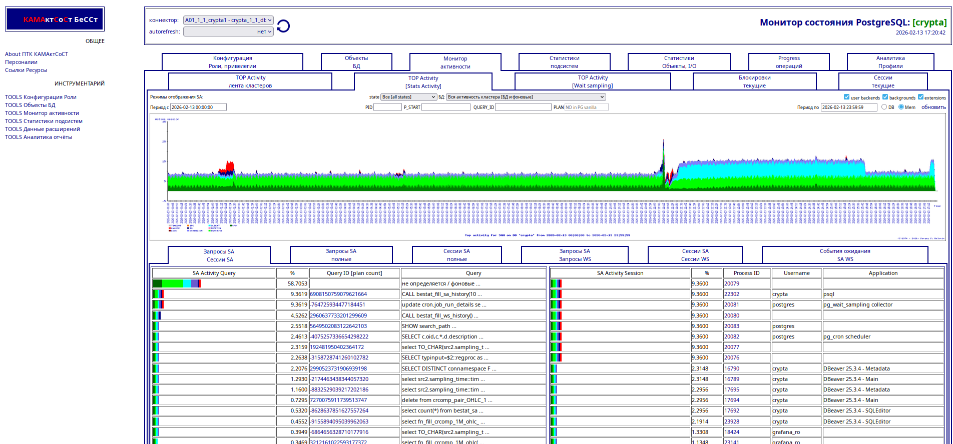 как сделать график активности кластера БД PostgreSQL TOP Activity в разрезе по классам ожиданий ?