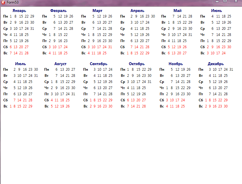 defecatorTactical Nuclear Penguinпропущено... жесть зачем рвать месяцы на части?? потому что дни привязаны к дням недели я имею в виду что например 1 февраля должно занимать клеточку ниже и правее 31 января а не скакать непонятно куда ... |