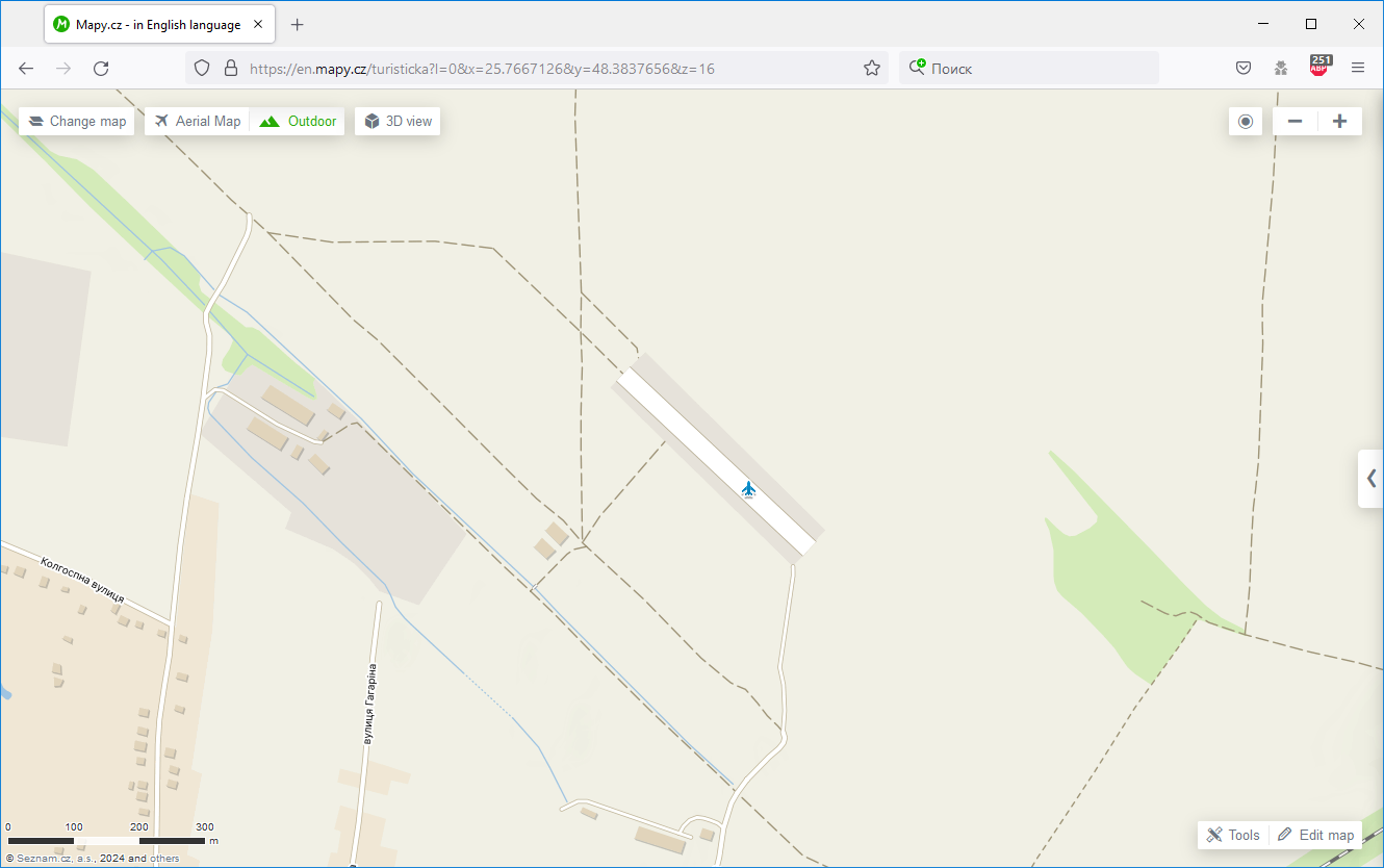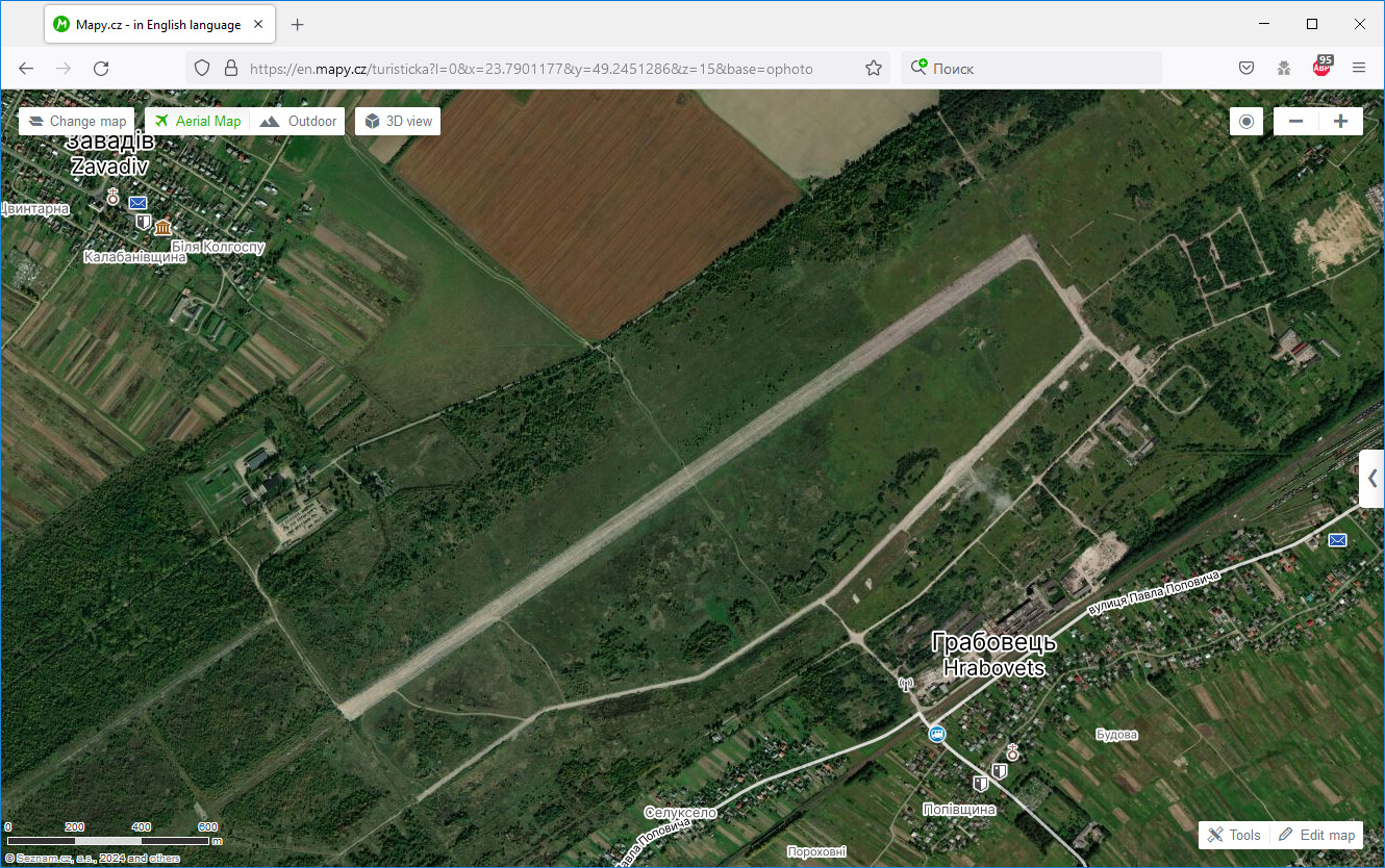 Лужаны - отмечен, как аэродром. https://en.mapy.cz/turisticka?l=0&x=25.7667126&y=48.3837656&z=16А аэродрома в нп Стрый - нет. Ну, нет, так нет. Мотаем на ус. Зашел под своей учеткой на OSM, но не нашел, как посмотреть историю изменений по координатам. Зато нашел карту, которая была скачана в начале СВО с opentopmap.ru (сейчас этого проекта уже нет), увидел не только взлетку, но и пометку, что это ВЧ.Выводы просты. Прежде чем начать пользоваться картой, надо смотреть, откуда она, "когда" она. ... |