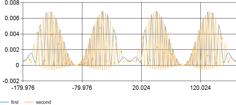 Частота увеличивается при удалении от экватора. На широте 65 график нарисовать не удается -- сплошной цвет. Это возле полюса функция превратится в функцию Дирихле, станет разрывной и не гладкой. И будет выдавать всякую хрень на соседних точках. ... |