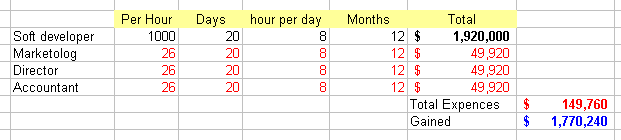 LenaV, читаем внимательно и шире. Я там лимон отдал на все-про все от выручки. Даже если 2 лошадки рабочих (2 программера пашут), получается по $167,000 в год на человека. ... |