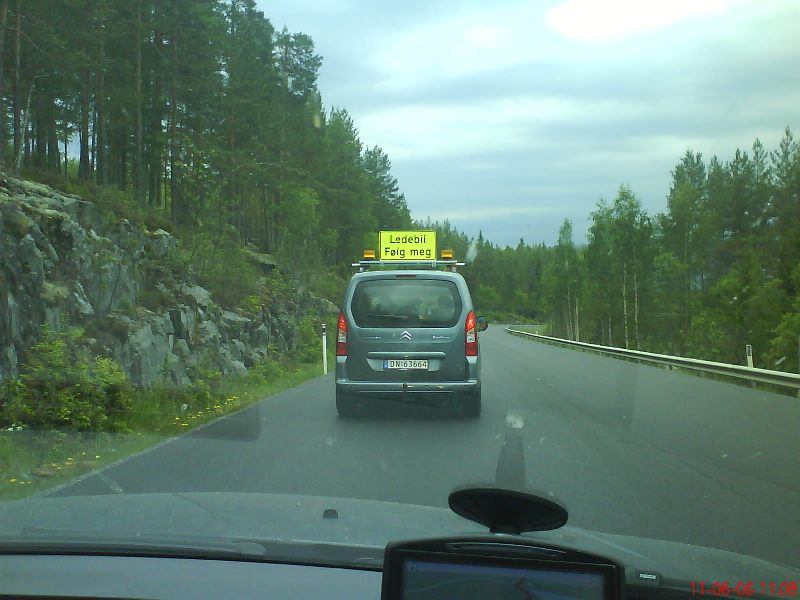 Этому норвегу не понравилось внимание фотокамеры моего мобальника, он отвернулся. Но всплыла норвежская надпись, чем то созвучная "Wait for...". И видна эта машина сопровождения... ... |