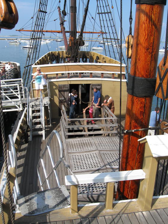 Поехали по короткой дороге. Потеряли час на трафике в Бронксе, но всё равно пересекли границу Масачусетса довольно рано и приняли решение двигаться в Плимут. Спланировано было всё очень плохо, ибо в тот день если-бы сразу решили ехать в Плимут, то лучше-б поехали по короткой дороге по побережью, через Род-Айленд. А ещё лучше-б туда совсем не поехали, ибо в суббту мы могли поехать в Клинтон и посмотреть выставку икон Андрея Рублёва, а в воскресенье и понедельник выставка была уже закрыта.... Вот-жеж невезуха. Вобщем где-то в районе 2 часов прибыли в место где была основана вторая постоянная английская колония. В 1956-м году смельчаки решили повторить подвиг первых колонистов и построили реплику корабля пилигримов "Mayflower-II" и пересекли на нём Атлантику. ... |
