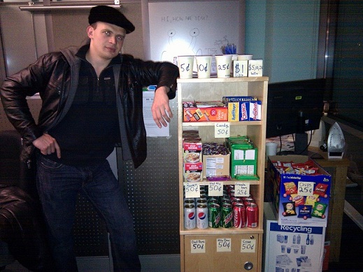 Прошло почти полтора месяца. За это время некоторые товары успели исчезнуть. Пришлось ехать в костко и делать вторую закупку, на этот раз на 85 долларов. Закуплено было: Коробка сникерсов (48 штук), коробка фруктовых cereal bars, 50 пакетов чипсов, 48 банок сока "полуздорового", ящик диетического пепси. На момент закупки кончились только сникерсы (их первоначально было только 4 штуки). Остальные продукты были где-то на 70% от первоначального уровня. Был добыт холодильник (я его выкрал у одного из работников со словами "нужно для общественного дела, у тебя все равно там только молоко мерзнёт). Самыми продаваемыми товырами оказались батончики Nature Valley oats-and-honey за 25 центов, напитки по 50 центов (особенно диетическая кола) и сникерсы по 50 центов. Увеличилось количество людей проходящих мимо моего места. Интересно то что первые два-три раза они со мной разговаривают, а потом уже молча приходят, берут то что надо и уходят. Один человек возместил деньги украденные ранее. Другой предложил привезти и купить товары для магазина. Не смотря на полное отсутсвие рекламы популярность места растёт, люди о нём говорят. Теперь "let's do the numbers": Первоначальное вложение: 105 баксов + 2 часа Вторая закупка: 85 баксов + 1 час Всего потрачено денег: 190 баксов. Всего продаж: 125.40 бакса за 43 дня. Осталось продуктов ещё дней на 90-120 (на глаз). Баланс магазина должен стать положительным через 3-4 месяца (на данный момент я думаю что "магазин" взял у меня кредит на раскрутку и должен мне 190 баксов). "Бухгалтерия" ведётся в гугль-документс в экселе. Для улучшения безопасноти SOP были изменены и теперь деньги из общедоступных "баночек" перекладывается в закрываюшийся ящичек в конце каждого работчего дня. Рекомендуемый метод расчета после 5ти вечера - в кредит в соответсвующей папочке. Кстати, люди покупают в кердит и потом возвращают сразу по несколько долларов. --с ... |