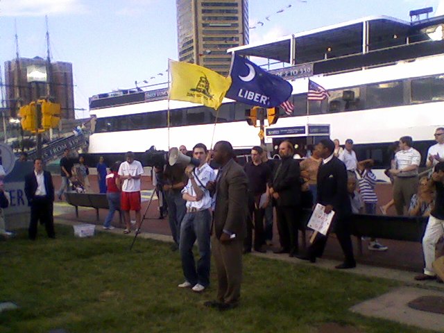 Вчера по всей стране прокатились "чаепития", названные так в честь "Бостонского чаепития" - акции неповиновения британским колонизаторам вылившееся позднее в войну за независимость. Была такая акция и в Балтиморе, где я и принимал в ней участие. Снимал сотовиком, поэтому фоток мало и плохие. Здесь я подхожу к месту сбора - туристический центр Балтимора, пожалуй самое людное в это время место. Вид на парусник загорожен огромным приготовленным для нас полицейским автобусом. ... |