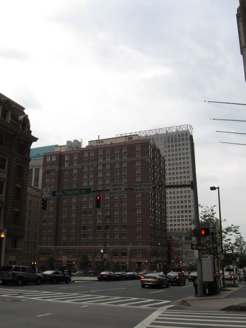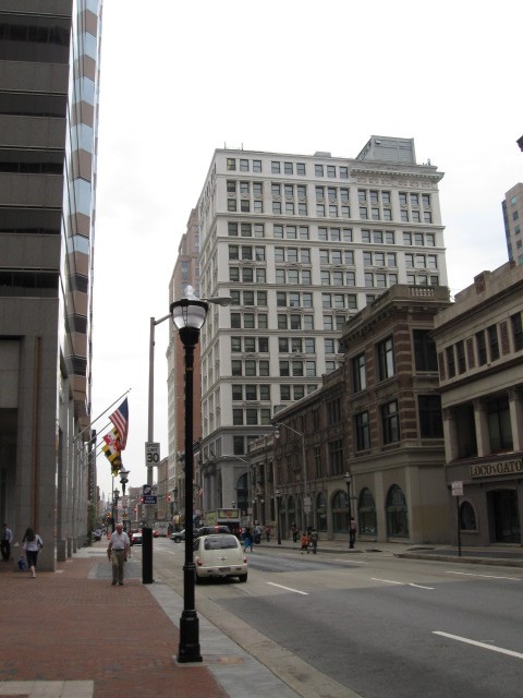 Собственно это географический центр Балтимора с его двумя самыми большими небоскрёбами. Поэтому я посмотрел вверх на старый билдинг "Бэнк оф Америка" с золотой крышей (будет на других фотках) ... |