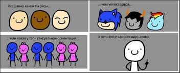 SandalTree Leonid Gurevich, Зачем вы утрируете. Если сами не можете представить ситуацию вот вам конкретнее: Вы идёте со знакомым, а он зигует всем белым, а встречным чёрным изображает знак отрезания головы или повешения. Ваши действия? ЗЫ И не надо никого лапать... Я специально абстрагирую ситуацию и довожу до абсурда. Если вам есть что сказать, говорите, а то скушно с вами становится. ... |