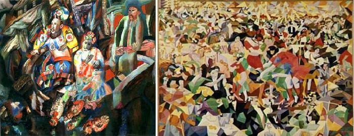 Как странно иногда разные искания, в искусстве в частности, сходятся в одной узкой точке у разных народов. А потом расходятся, чтобы пересечься снова неизвестно где и когда. Да и в каком качестве? В Москве проходит выставка Павла Филонова(Музей личных коллекций). Целая эпоха русского авангарда, его основоположник и идеолог. Родился в 1883, учился классической живописи, увлекся футуризмом – и захотел уложить его в прокрустово ложе разработанной им теории «аналитического искусства»: Первое объединение, созданное художником в 1914, называлось «Сделанные картины»; одним из главных положений своего аналитического метода он объявил «принцип сделанности»: кропотливая проработанность каждого квадратного миллиметра живописной поверхности была непреложным условием создания сколь угодно большой картины. «Тщательно сделанная вещь», картина должна была воздействовать на эмоции зрителя и заставлять его принять не только то, что художник видит в мире, но и то, что знает о нем. Тут же всплывает в памяти «Как делать стихи» Маяковского, но сейчас о другом. В том же 1883, в Италии родился Джино Северини. Читая их биографии юности, можно подумать, что речь идет об одном и том же человеке. А как вам название одной из его теоретических работ "Машинизм в искусстве"? Вот она – волшебная алгебра создания шедевров! Филонова при жизни на родине не поняли. Единственная прижизненная персональная выставка в Русском музее была запрещена – и даже не открылась. Но он упивался своим временем, жил им – почти буквально, ведь денег ни за одну из своих картин он не брал принципиально. Умер в конце 1941 года, в блокадном Ленинграде… А Северини прожил долгую и счастливую жизнь – и творческую в том числе. Умирая в 1966 году он не мог жаловаться на судьбу. Вот так – сначала сошлись, а потом разошлись – рельсы двух «машинистов» живописи. Дарошка-калабок………………… :) Слева – П.Филонов «Восток и Запад». Справа – Д.Северини «Танец». Специально оставил разграничительную белую полоску – а то ведь «встык» очень трудно определить границу, смотрится как единое целое. ... |