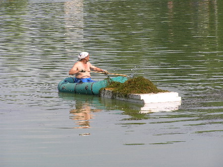 в центре пруда - полуостров с пивом "Клинское"! но плавать там нельзя! тина! приходится в бассейне :) ... |