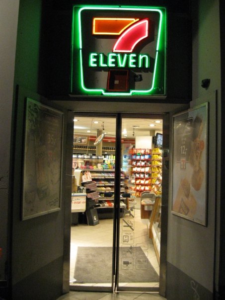 Вход в 7-11. Кстати, самооткрывающиеся двери не похожи на американские и я всё время пытался открыть их привычным пинком в стело, но они вовремя разезжались. ... |