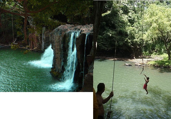 LenaV MSolo Добавлю ещё одну картинку и на сегодня всё. Слева вид на водопад взят с интернета, а справа мой старший сын прыгает, а муж фотографирует: а где вы там останавливались? местечко не посоветуете? В водопад сын тоже прыгал, а с каната получается не прямо в водопад, а рядом. Там видно слева на картинке канат и лестницу. На правой картинке сын прыгает с каната, который держит "туземец", а муж фотографирует. Потом сын вернулся по лестнице, и муж прыгал, а сын фотографировал. ... |