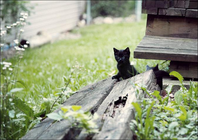 Бездомная кошка родила 4-х котят пару месяцев назад у меня на заднем дворе. :)) Один черненький, один серенький, один коричневый и один полосатый. Мы их кормили 3-4 раза в день самой вкусной едой мы могли найти. Утром перед работой выносили мисочку, днем ребенок кормил, после работы опять я и поздно вечером перед сном. Мамаша кошка стала ну очень солидно выглядеть. И у деток животики округлились. Еще мама кошка им приносила добычу. Однажды я видела она принесла маленького зайчика. В другой раз я обнаружила двух птенциков, которых все кошачье семейство очень весело поедало. Мы с котятами разговаривали, играли, приучали к рукам и вот и вот и вот рыдаю... вчера всех отдали :( Опустел на дворик. Одна только мама кошка ходит грустная, мяукает, детей своих ищет. Я уж ей обьясняла-обьясняла, что деткам ее сейчас хорошо. У них есть ласковые хозяева, теплый и сухой дом, вкусная еда, но ведь кошка не понимает по-русски. вот там мы с ней вместе и грустим. ... |