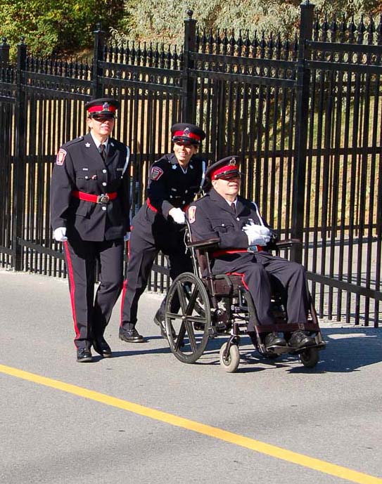 На следующий день, в воскресенье был День памяти полицейских (погибших при исполнении). Был большой парад полицейских, похоже по немногу народа из разных подразделений. Все они поднялись на парламентский холм, построились перед парламентом и наверное говорили речи. Похоже что полицейские в юбочках тоже есть ... |