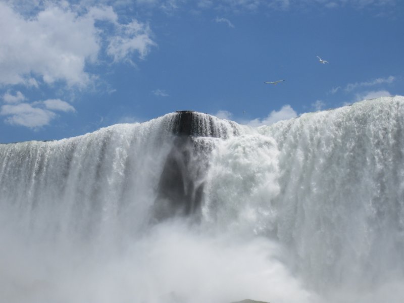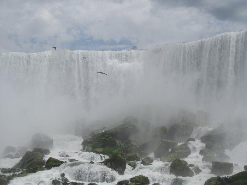 На второй день мы отправились в поездку на Maid of the Mist. Это было просто классно. Вот наш кораблик причаливает на фоне Американского водопада. ... |
