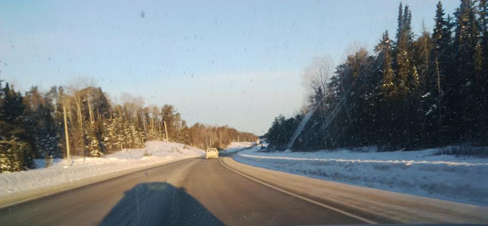 Переночевал в Thunder Bay. Еще два часа ехал вечером и и два час утром пока рассвело - итого проехал в темноте еще 450 километров. Вот утро. Дикие мета проехал и начинаются более менее заселенные людные места. ... |