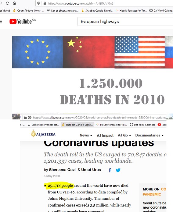 Нужно задумать что опасней для человечества - автомобили или вирус? Вверху количество смертей в автомобильных авариях за один год Внизу от вируса, который в большинстве случаев не является основной причиной смерти. https://www.aljazeera.com/news/2020/05/world-coronavirus-death-toll-exceeds-250000-live-updates-200504231301555.html ... |