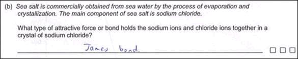 Ответ явно писала девочка. Вопрос: What type of attractive force or bond holds .... Ответ: James Bond. ... |