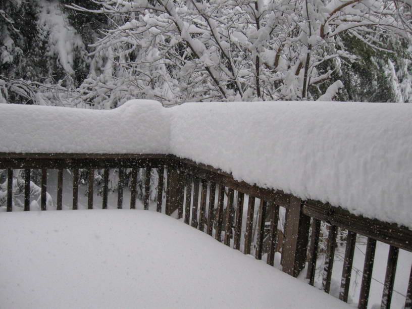 Как-то не густо у вас со снегом было. Сейчас я наковыряю. Это мой дэк (типа большого балкона на подпорках). Снега нападало около двух футов когда я его начал счищать. В общей сложности выпало около метра за один раз. ... |